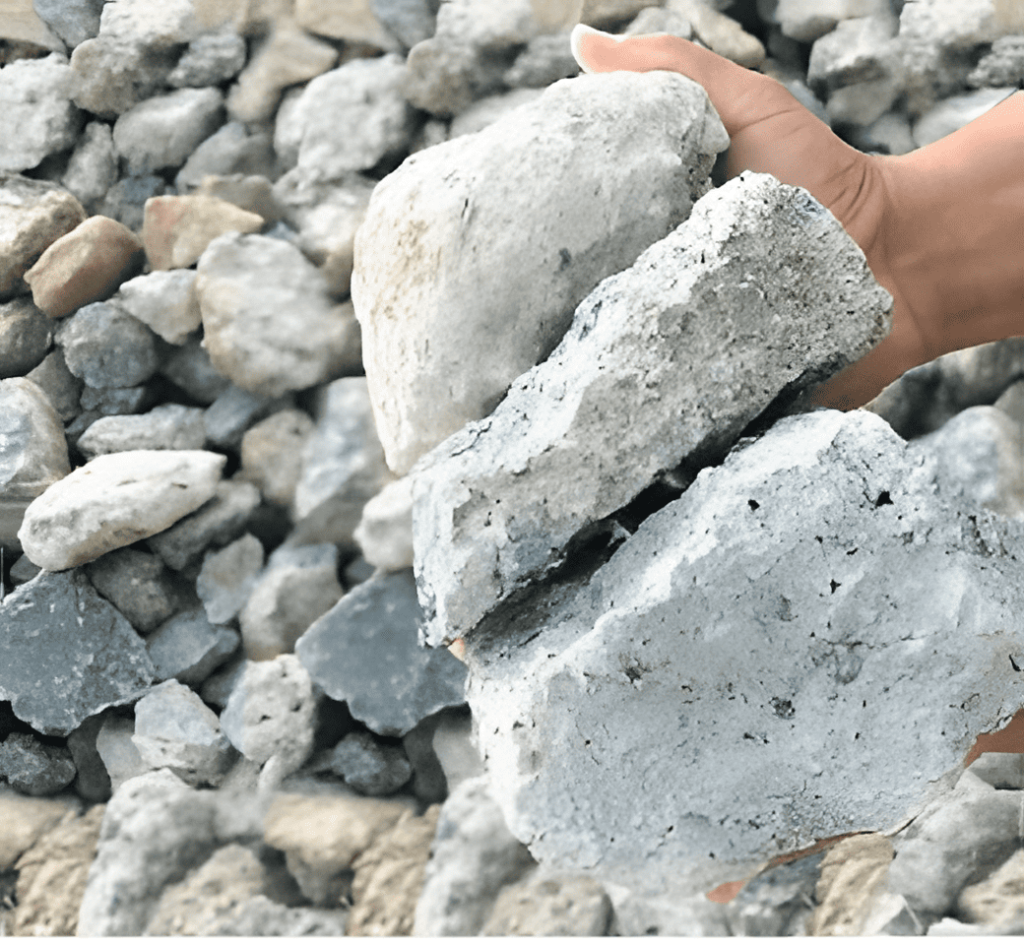 Material reciclado, proveniente de concreto ou resíduos cimentícios, utilizado em reforço de subleito, elevação de greide, gabiões e outras aplicações geotécnicas e de pavimentação.